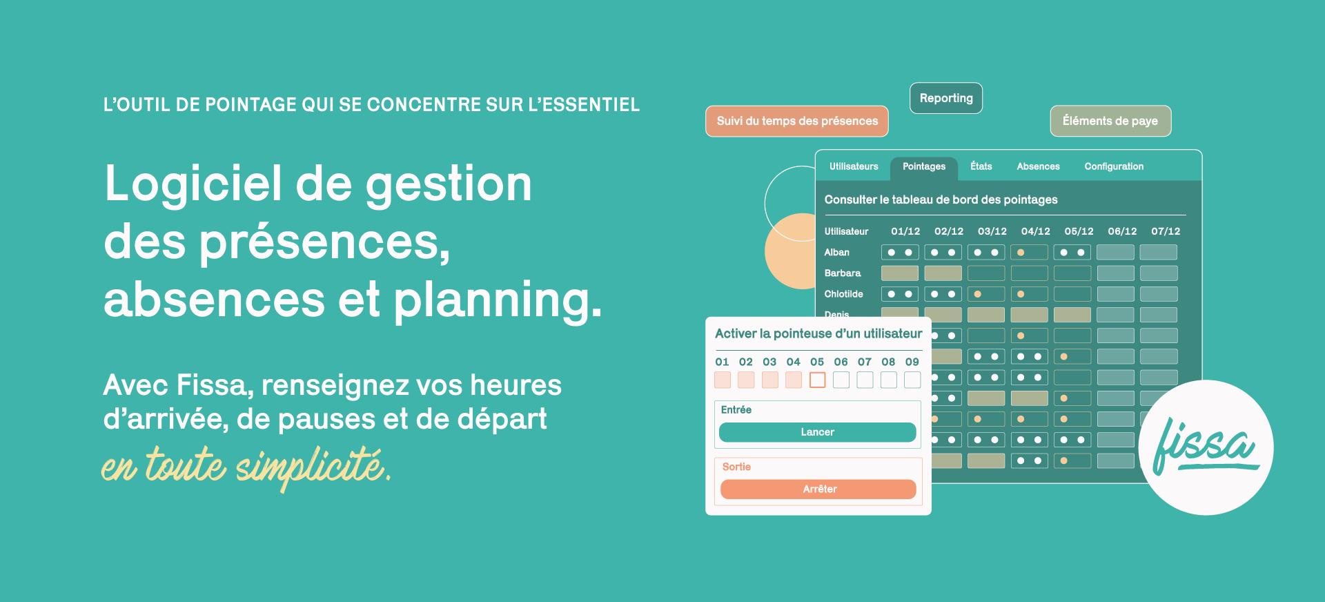 Fissa est une solution de suivi des présences adaptée à tout type de structure. Que votre équipe soit en présentiel, distanciel ou hybride, Fissa vous propose différentes options de pointeuse virtuelles ou physiques adaptées à votre organisation interne. Avec Fissa, vous gérez en toute simplicité :